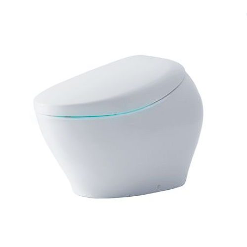 - Sleek, low profile one-piece skirted Smart Bidet Toilet with integrated personal cleansing and comfort features